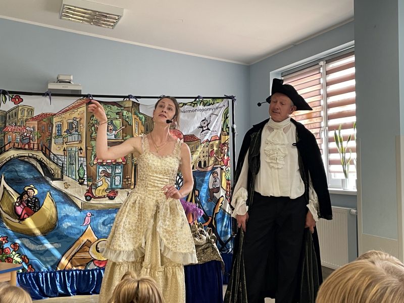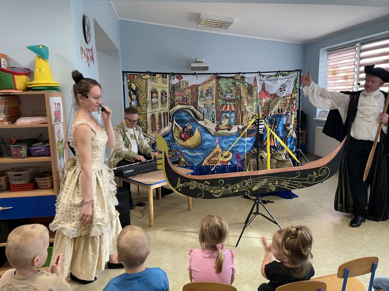 23 października dzieci wzięły udział w przedstawieniu "Gondola - Maestro Makaroniego" . Główny bohater - Maestro ma wszystko – gondolę, maski, makaron i …. muzykę! Tylko… jego gondola nagle staje w miejscu. Co ją poruszy? Czy wystarczą makaronowe sztuczki? A może gondola czeka, aż Maestro przestanie udawać i po prostu będzie sobą? To piękna historia pełna muzyki i włoskiego humoru wykonana przez aktorów z Filharmonii Pomysłów z Poznania.