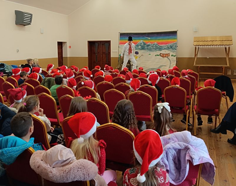 Spektakl "Zimowa afera- ktoś porwał renifera" w wykonaniu teatru Maska opowiada historię Bałwanka Kuleczki, który marzył, aby zima trwała bez końca. Dzieci odkryły, że ktoś podszywa się pod Świętego Mikołaja, a dodatkowym zaskoczeniem było zaginięcie Renifera Kopytka. Historia, mimo dramatycznych zwrotów akcji, zakończyła się szczęśliwie. Wizytę teatru Maska zorganizowała Biblioteka Publiczna w Rozdrażewie filia w Nowej Wsi. Po spektaklu dzieci odwiedził Mikołaj. To był radosny, pełen pozytywnych emocji dzień.