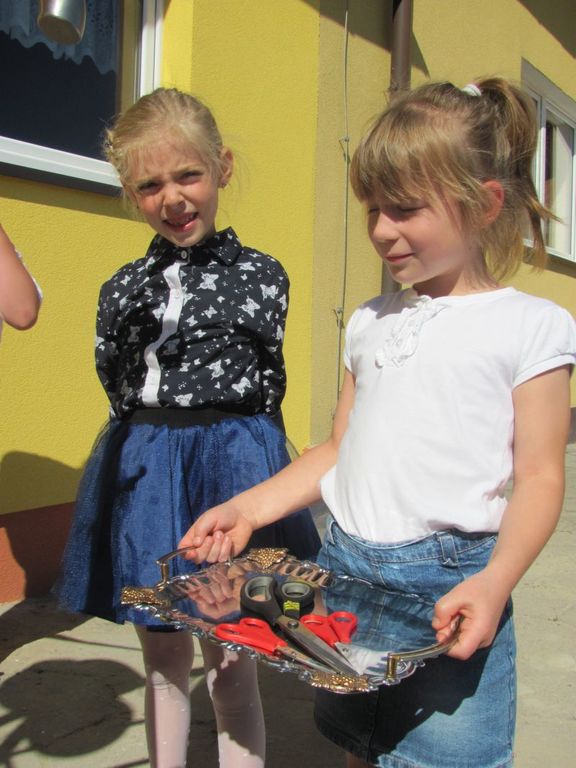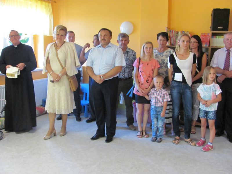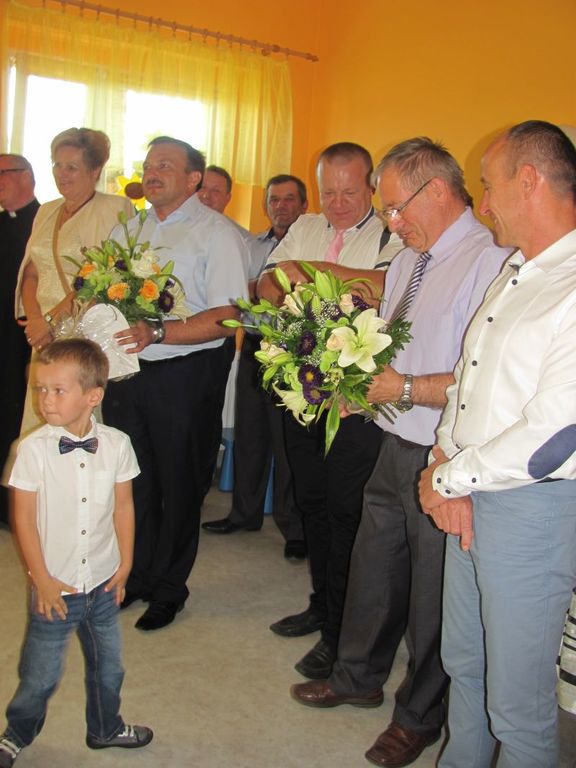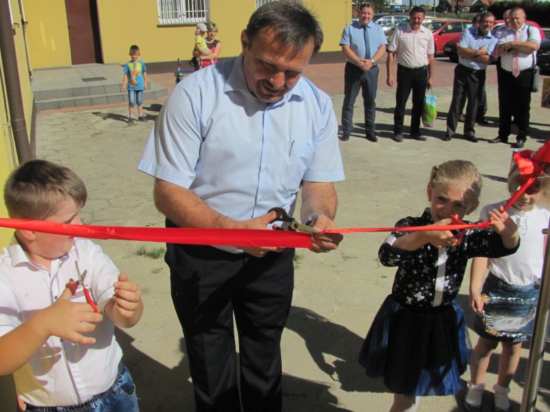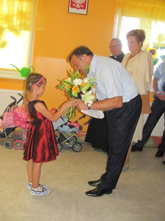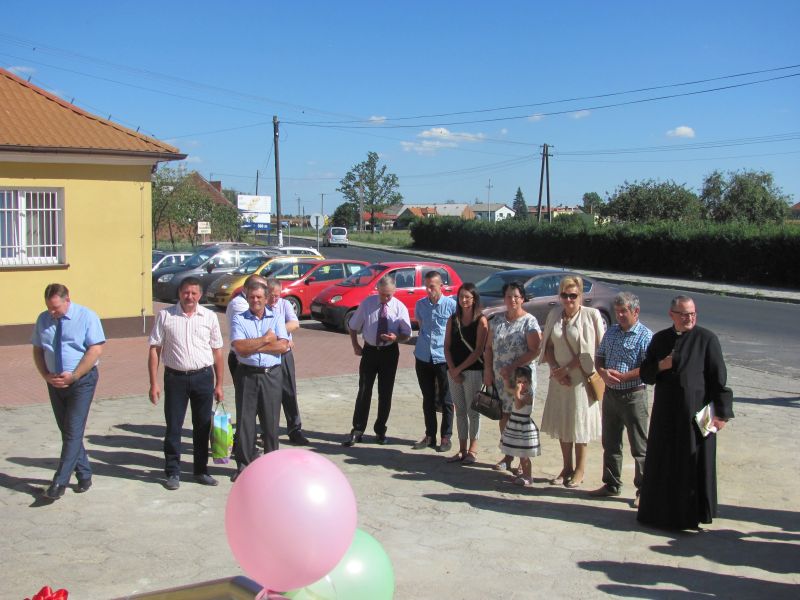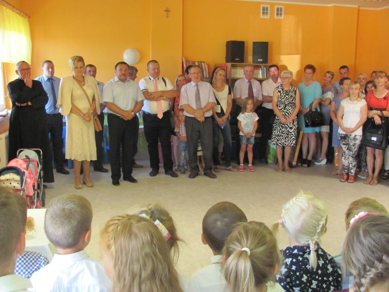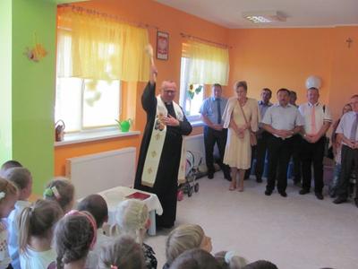 W środę odbyło się uroczyste otwarcie przedszkola. Pan Wójt - Mariusz Dymarski z dziećmi dokonali symbolicznego otwarcia budynku przecinając wstęgę. W obecności wielu gości i dzieci Ksiądz Kanonik - Robert Dadacz poświęcił placówkę. Przedszkolaki zaprezentowały piękny okolicznościowy wiersz, zaśpiewały piosenkę. Nie obyło się bez podziękowań, przemówień i oczywiście zwiedzania nowego przedszkola. Na zakończenie wszyscy zasiedli do stołu i skosztowali pysznego tortu oraz ciasta przygotowanego przez rodziców. Nauczyciele i dzieci dziękują za przyniesione prezenty.
